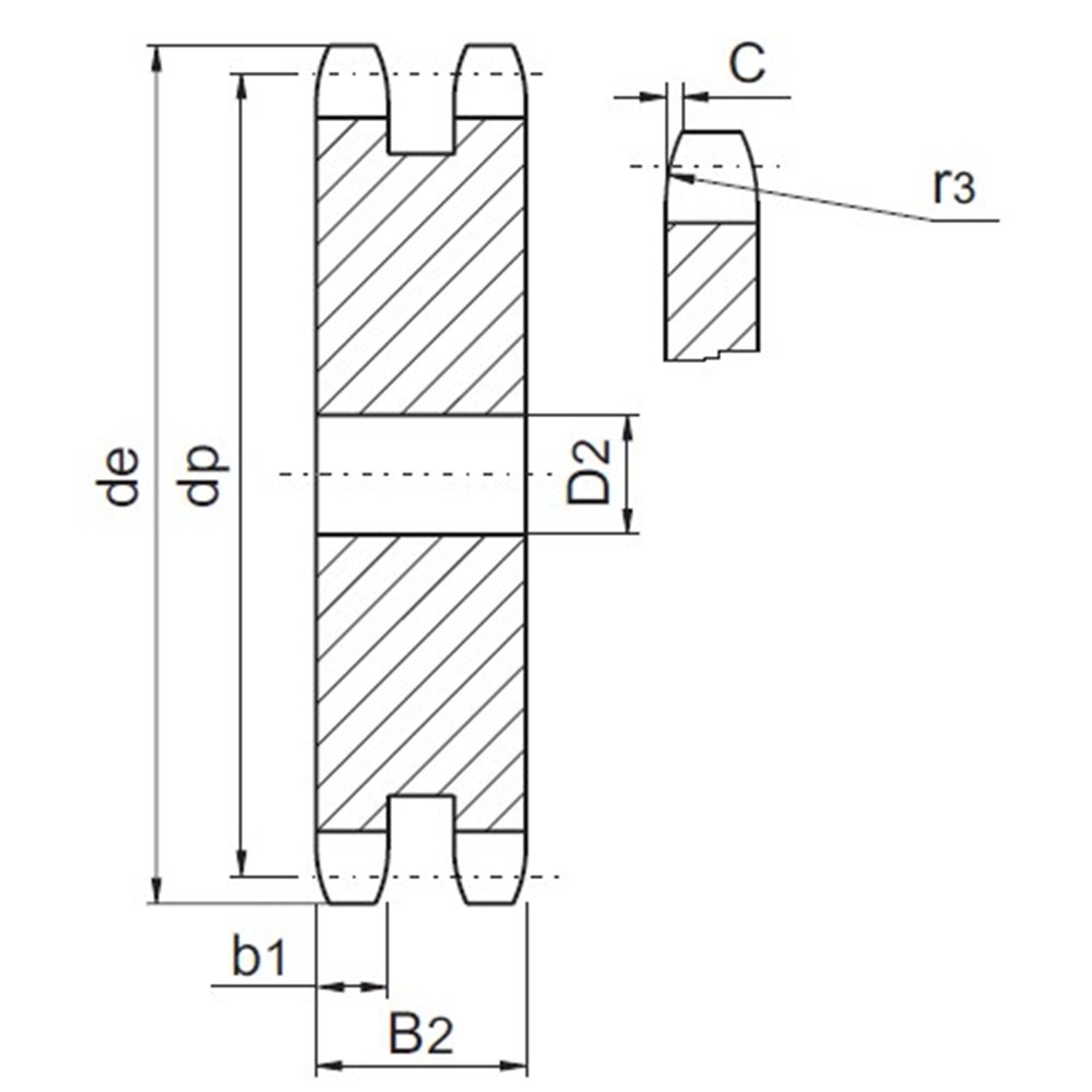 Koła łańcuchowe bez piasty z hartowanymi indukcyjnie zębami, 57 zębów pod łańcuch 05B-2 - 8 x 3mm wg norm DIN, ISO, PN.