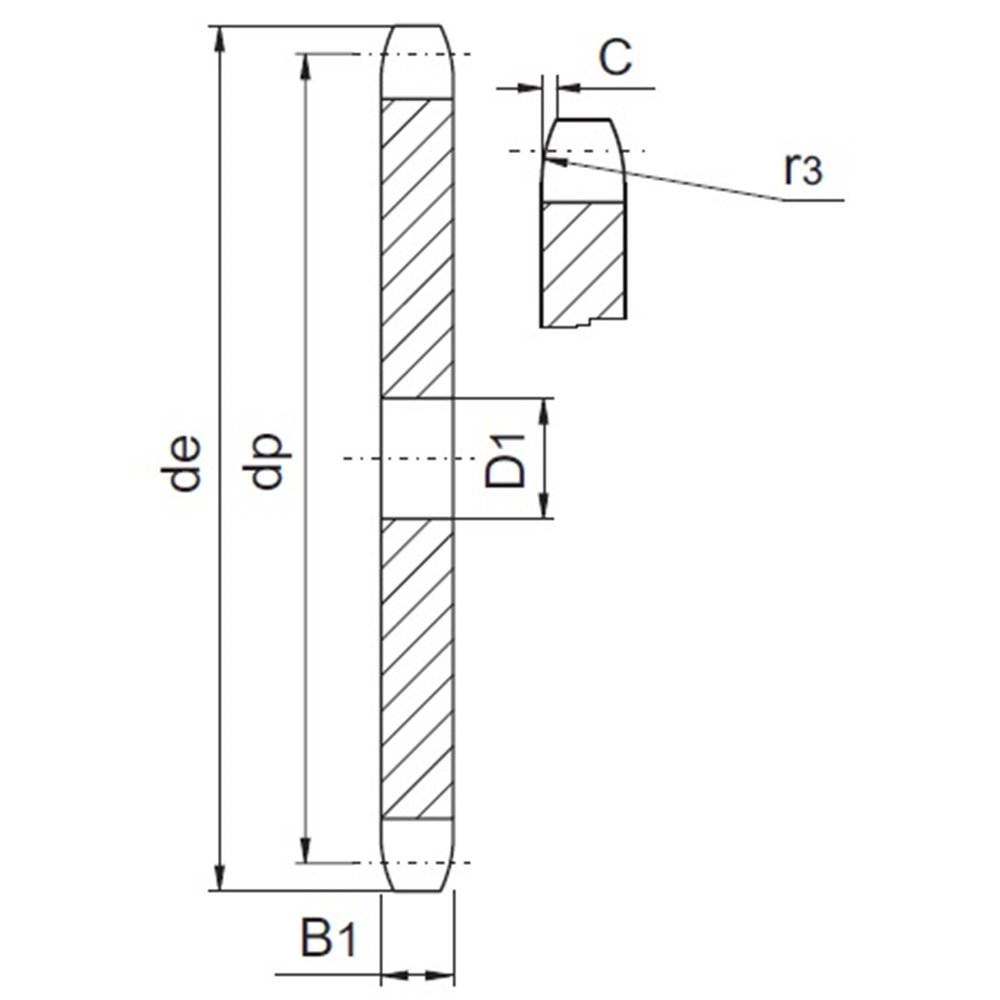 Koła łańcuchowe bez piasty z hartowanymi indukcyjnie zębami, 46 zębów pod łańcuch 06B-1 - 3/8″ x 7/32″ wg norm DIN, ISO, PN.